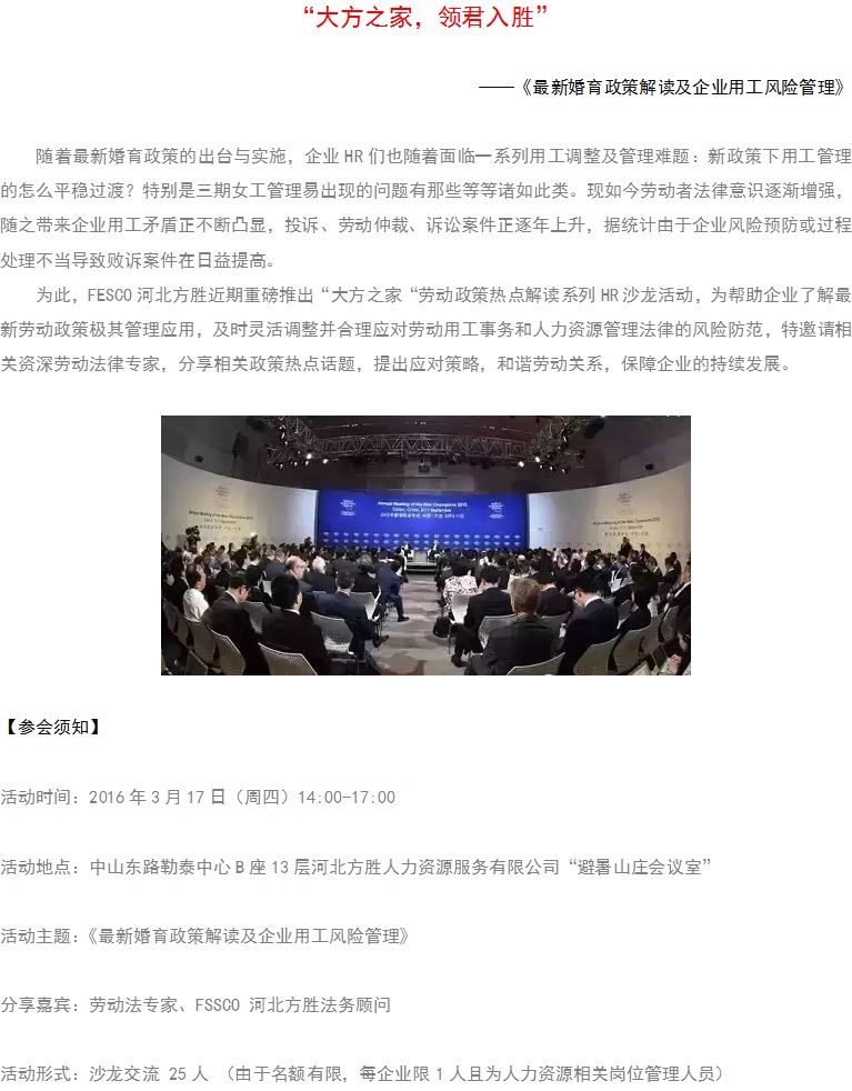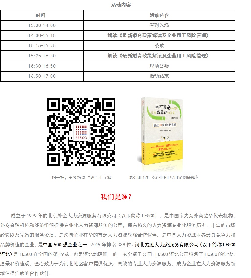 FESCO 河北方胜 劳动政策热点解读系列HR沙龙活动