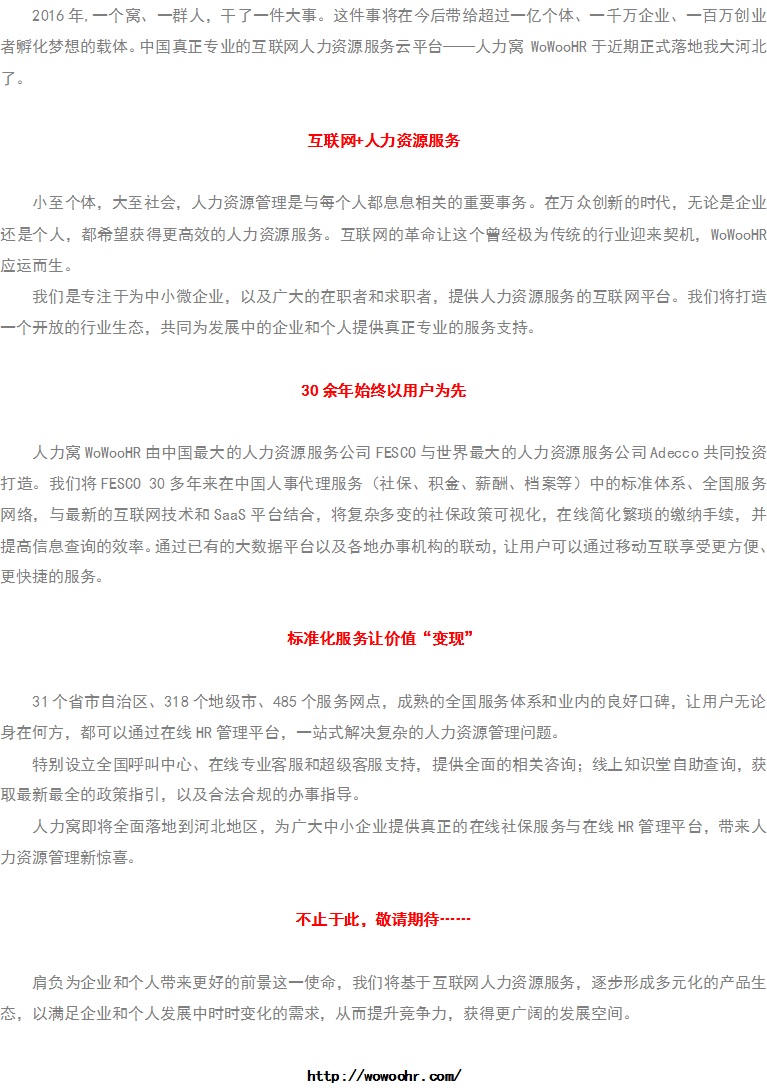 【HR资讯】Wuli大河北企业们的福音:“人力窝”来了