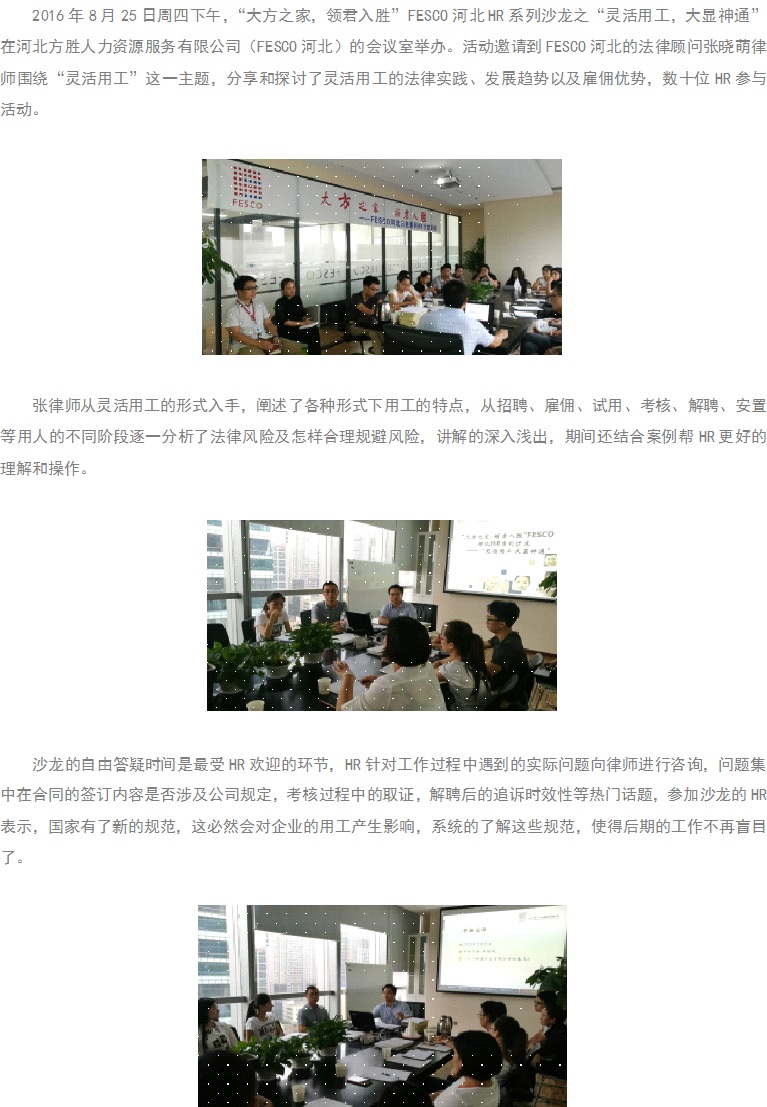 【HR沙龙活动】“大方之家 领君入胜”FESCO河北系列HR沙龙之“灵活用工 大显神通”内容分享