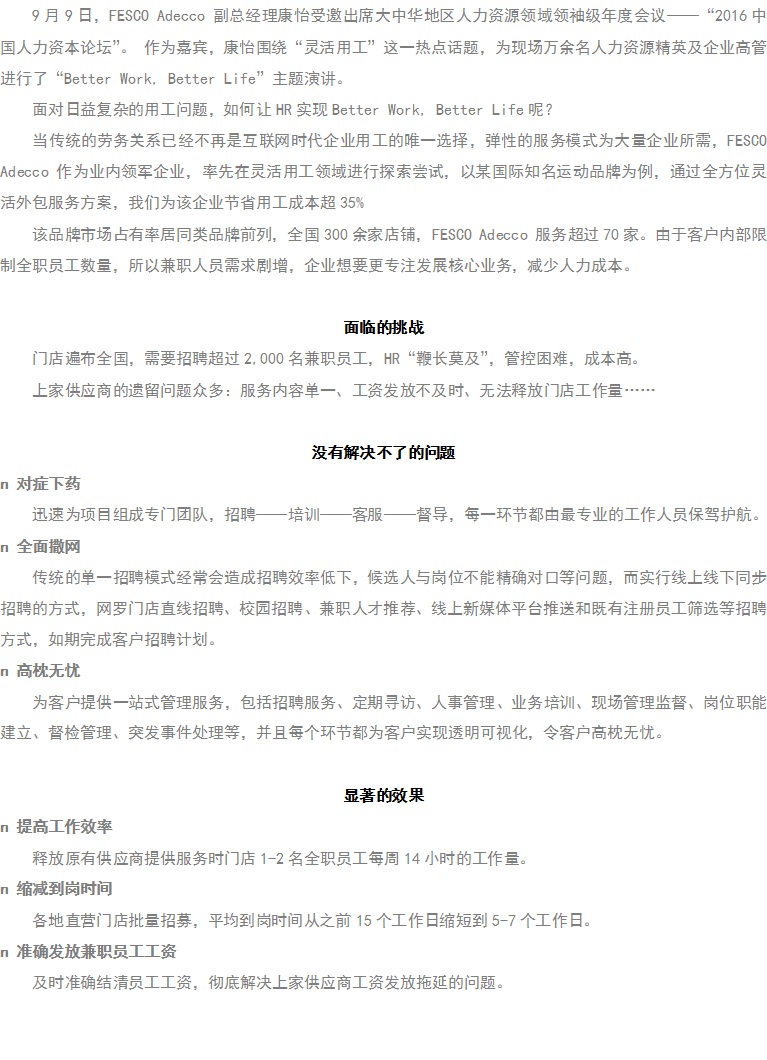 FESCO Adecco 副总经理康怡受邀出席 “2016中国人力资本论坛”