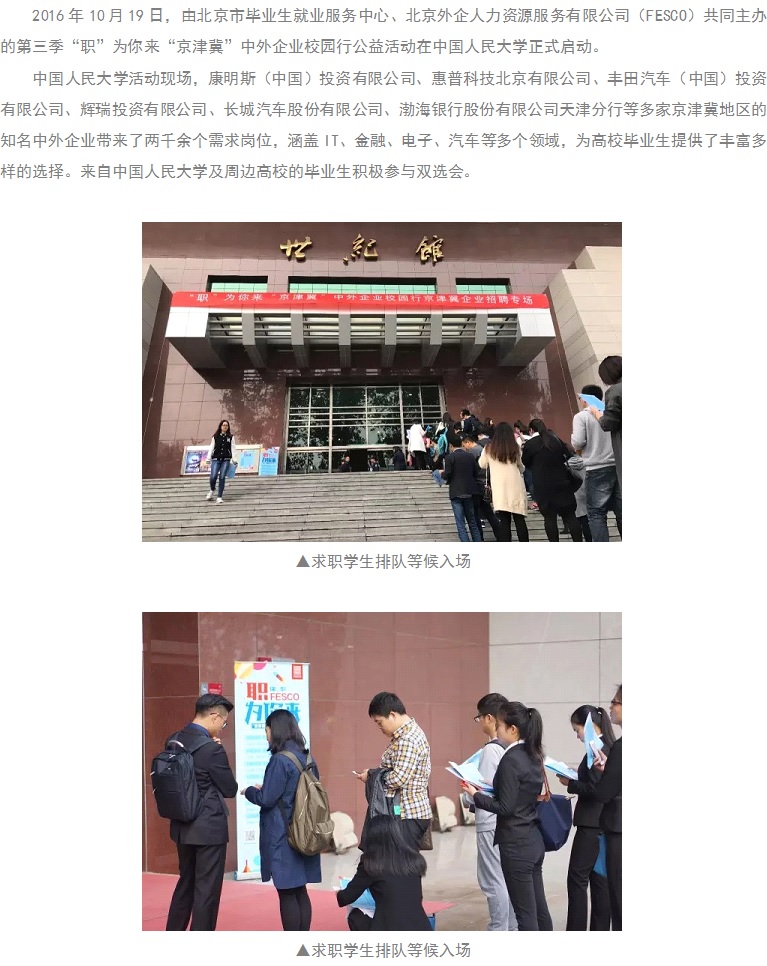 第三季“职”为你来“京津冀”中外企业校园行活动在人大揭开帷幕
