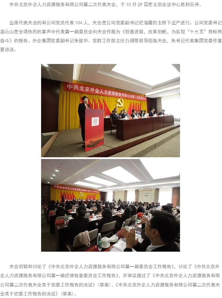 热烈庆祝中共北京外企人力资源服务有限公司第二次代表大会胜利召开